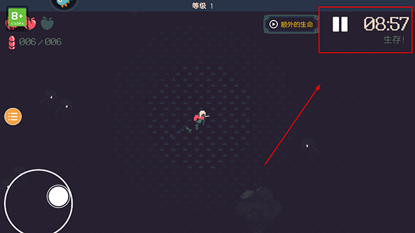 5、游戏时间显示在游戏界面的左上角,如果玩家的角色没有在20分钟内死亡,玩家就获胜。