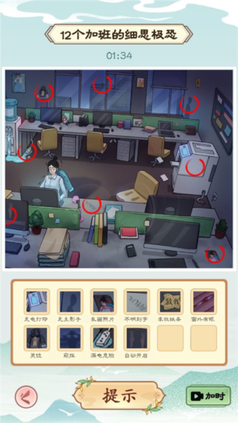 4、首先,玩家需要知道在这里他们可以在加班期间找到12个可怕的道具,然后,玩家需要去搜索这些道具。