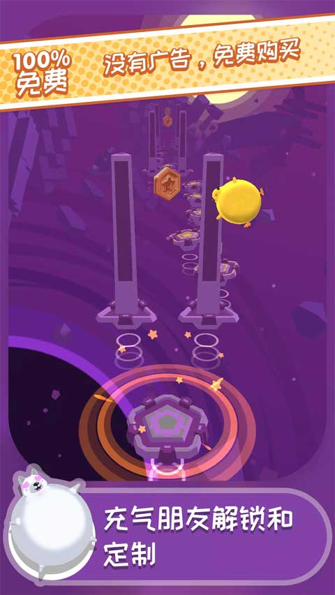 整个游戏使用漫画风格来塑造角色形象,可以不断改变朋友的位置,左右移动拇指以保持节奏,这很简单,更多可爱的气球形状的动物同伴解锁,引导动物同伴跳过由平台组成的障碍路线,随着流行歌曲的节奏轻敲脚趾,不同关卡的不同挑战包含不同的游戏道具,给玩家带来全新的视听冲击。