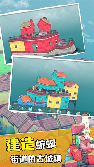 2、放置玩法可以帮助你更容易地建造自己的城镇,并在水面上建造美丽的建筑。