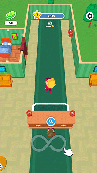 2、屏幕底部的区域可以自由滑动来控制角色的移动,开始接待第一位客人。