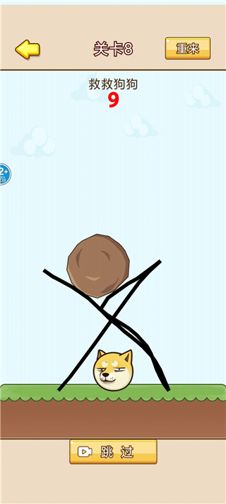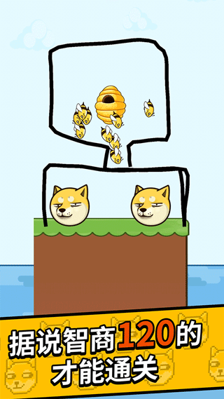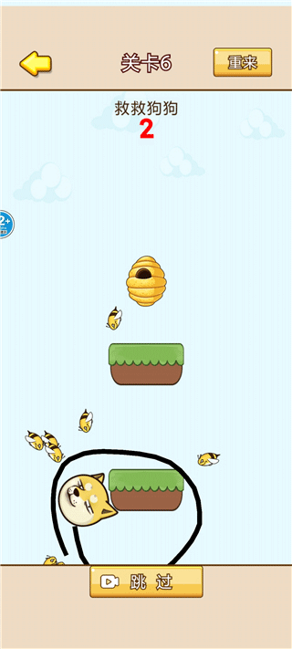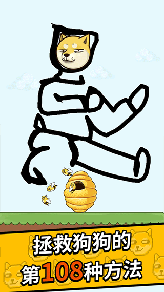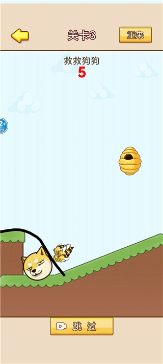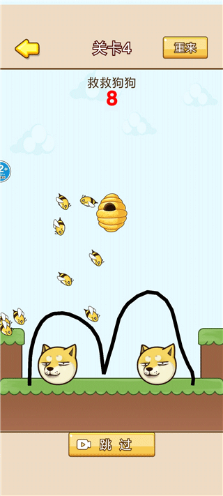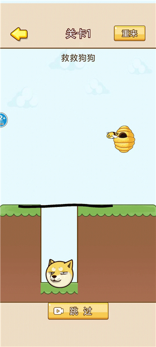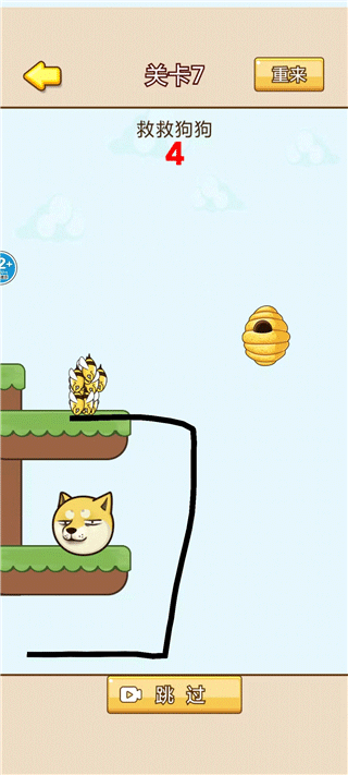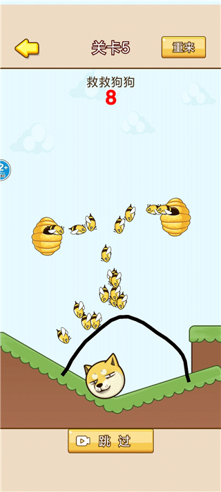 第三关,依旧可以画个弧度,即可将狗子好好保护起来;