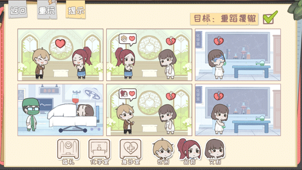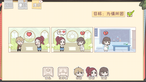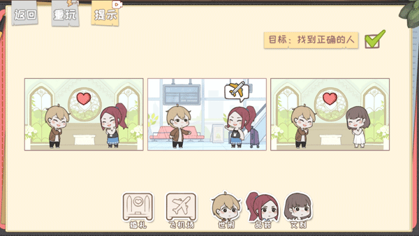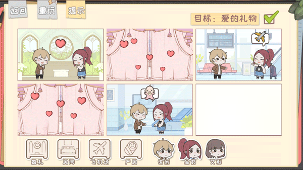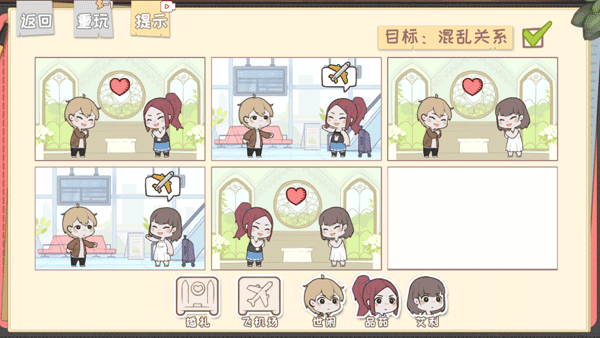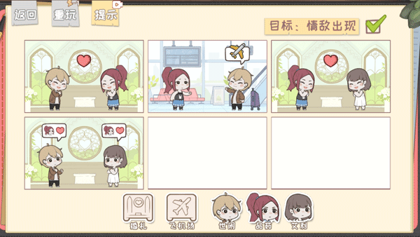 1、在脱单之王游戏中,玩家需要将屏幕底部的场景和角色拖拽到绘图板中,以形成与关卡名称相匹配的故事情节。
