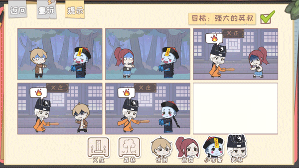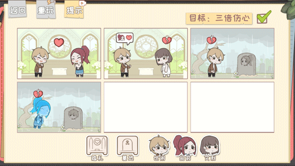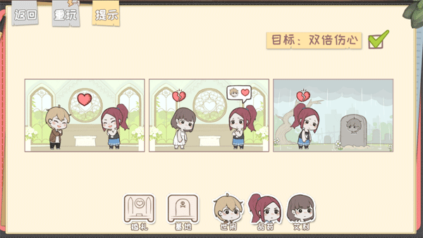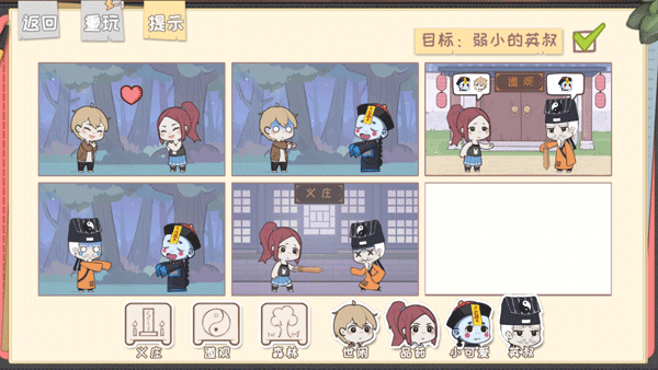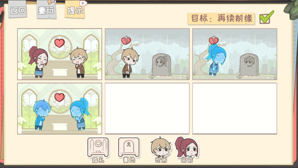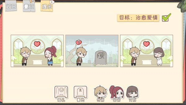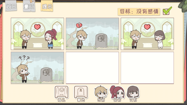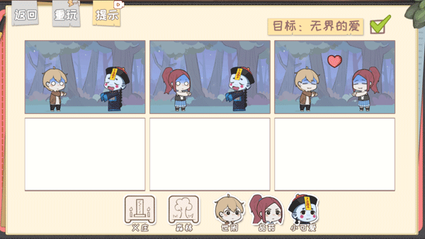 2、有些关卡可能相当具有挑战性,在这种时候,你可以点击上面的“提示”,免费获得标准答案,当然,答案不是唯一的;玩家也可以自己创造更正确的情节。