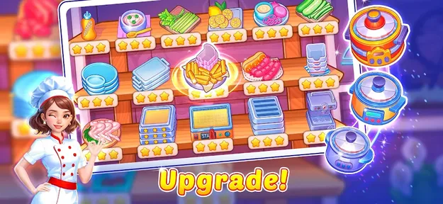 1、参加烹饪比赛并完成任务获得奖励,并使用这些奖励来升级厨房设备和餐厅环境。