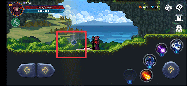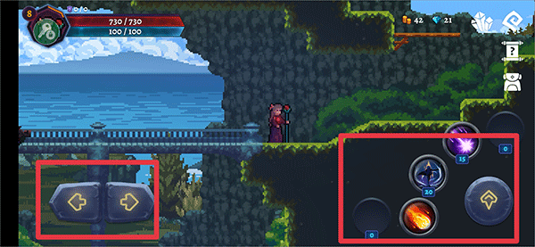 1、进入黑暗崛起游戏后,使用左下角的左右键来控制角色的移动,右边的向上按钮用于跳跃,其他按钮分别用于角色的技能。