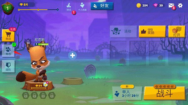 1、进入动物王者游戏后,选择你的角色,有三种类型的角色:平衡型、坚固型和进攻型,选择。