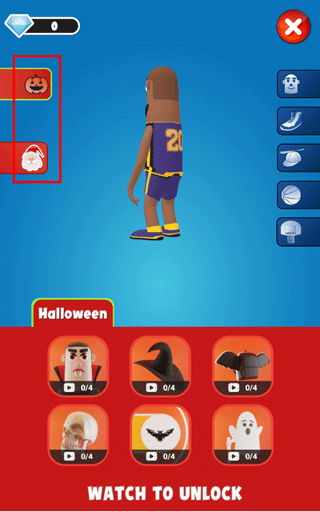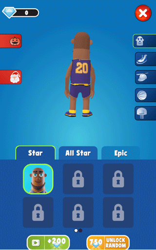 3、通过关卡获得钻石,并交换更酷的角色和个性化的篮球。