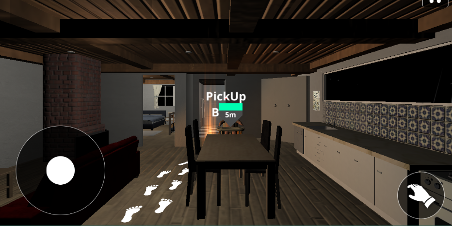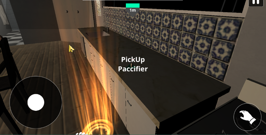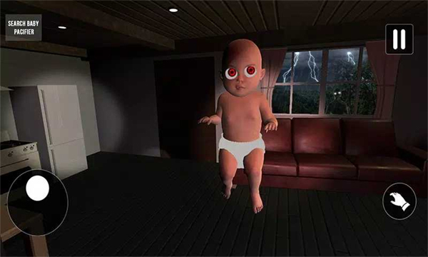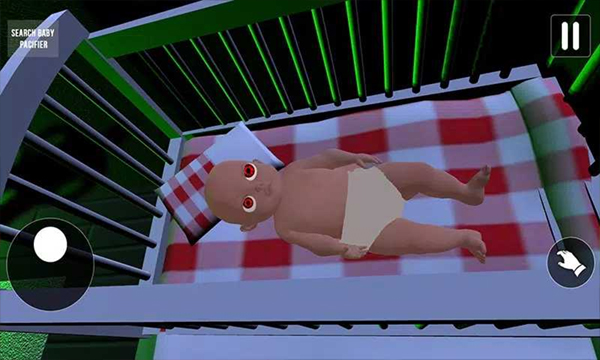 4、游戏操作方式:左侧控制方向移动,右侧用于抓取物体,右上角可以暂停,走向前方的baby,把他抱起来。