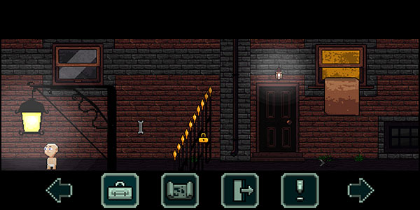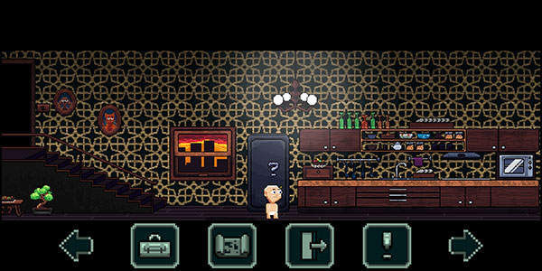 4、点击屏幕左右两侧的箭头可以控制角色移动,双击箭头可快速移动;当头顶出现问号时,可以点击右下角的感叹号图标与场景互动。