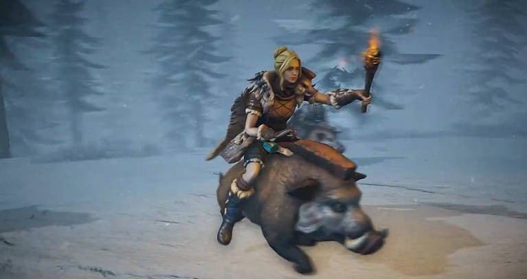 3、抓山羊需要前往雪山,在混沌光球范围内,环境寒冷,山羊被冰块封住,需要用篝火融化,同时小心解冻过程中可能出现的熊和狼。