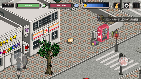 当玩家遇到一只流浪猫在街角翻找食物时,命运的遭遇会让你的故事与众不同,让你可以写一个新的故事,游戏采用复古的像素风格,创造出一个生动的城市,丰富的游戏玩法,可以和你的猫一起探索每一个角落,不断发现隐藏的惊喜和情感。