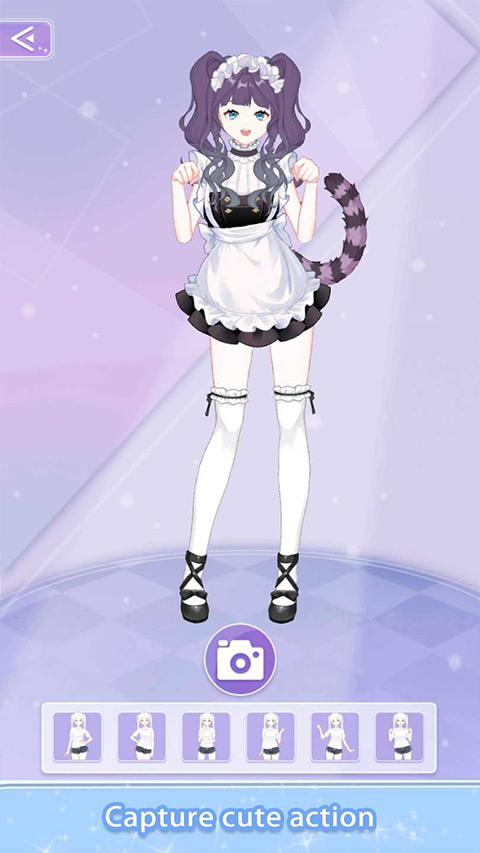 7、点击拍照按钮,可以选择不同的场景和动作,为你的角色拍摄精彩照片。
