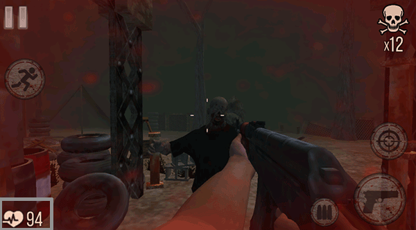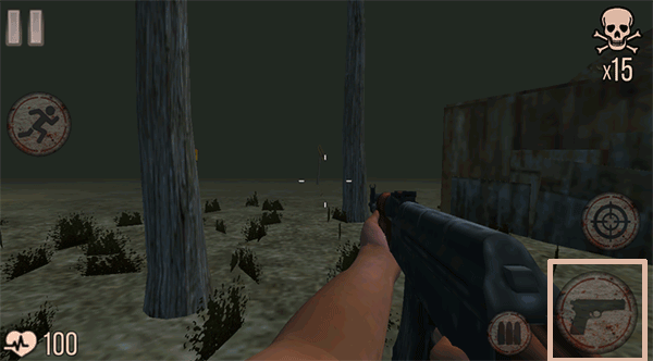 2、可以先用一些掉队的僵尸练习射击技巧。场景左侧会出现一只僵尸,瞄准它后,点击右下角方框内的按钮进行射击。