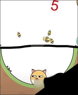 2、第二关:画一个圈,把狗狗和草地一同圈住就能完成。