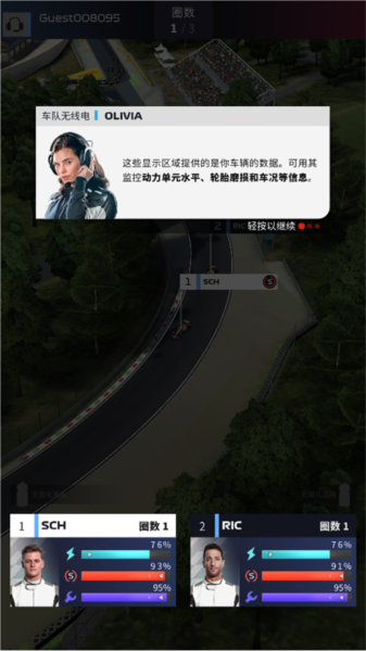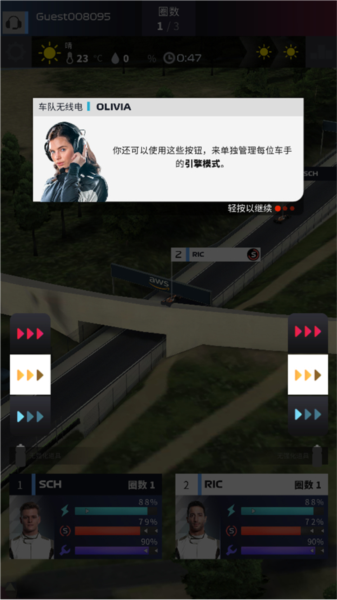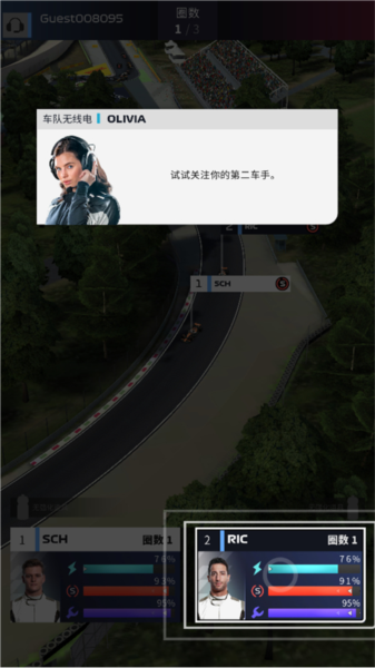进入比赛界面,玩家将控制两位车手,并可在比赛过程中进行管理。