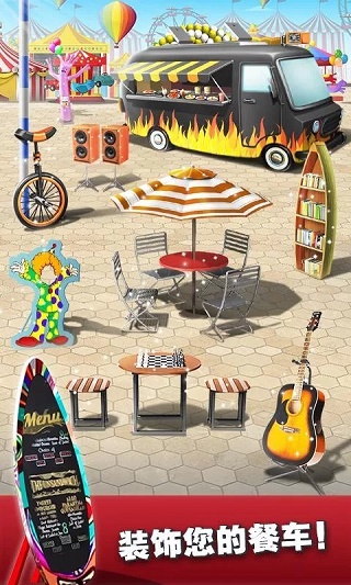 2、收集各种新鲜美味的食物,打造属于自己的专属餐车,吸引更多的顾客。