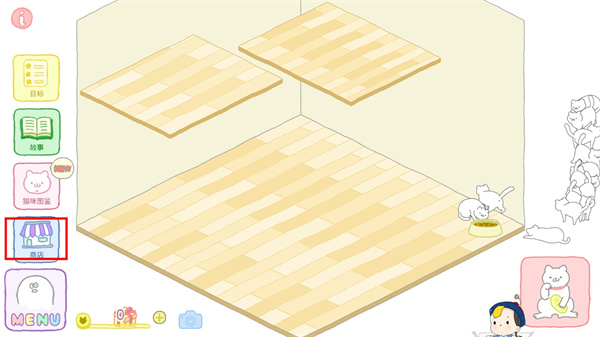 2、游戏刚开始可能觉得环境有点空旷,可以前往商店购买一些家具和玩具来装饰空间,让猫咪的家更温馨。