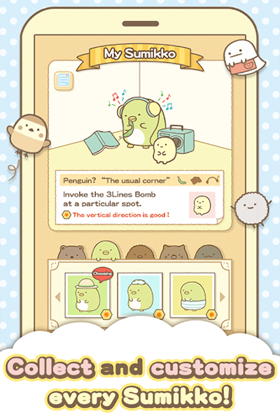 1、操作方法简单易懂,结合可爱的角落角色,玩家可以轻松开始,随时随地缓解压力。