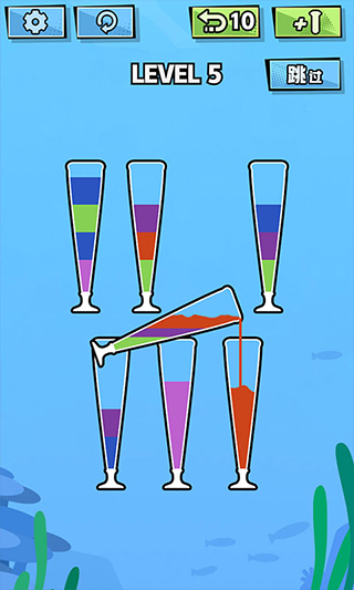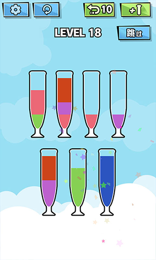 1、液态拼图通过单击选择源试管,然后单击目标试管,可以尝试转移有色液体。操作直观,易于操作。