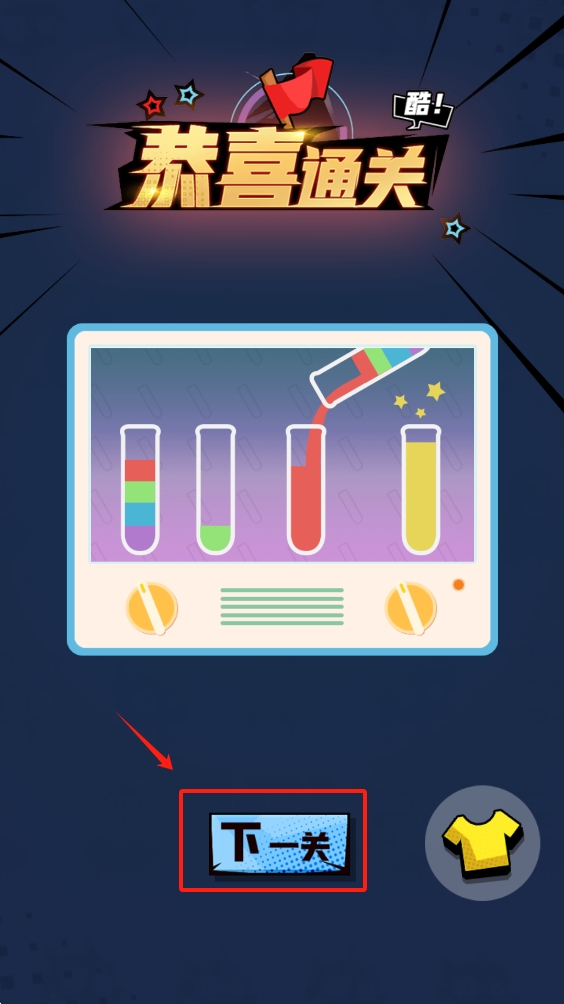 3、完成关卡任务后,点击“下一关”按钮,继续挑战更复杂的关卡,同时不断提升你的解谜与配比技巧。