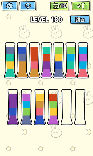 3、液态拼图只有当目标试管有足够的空间且颜色一致时,才能完成液体转移,精准操作考验整体策略。