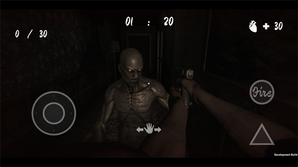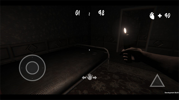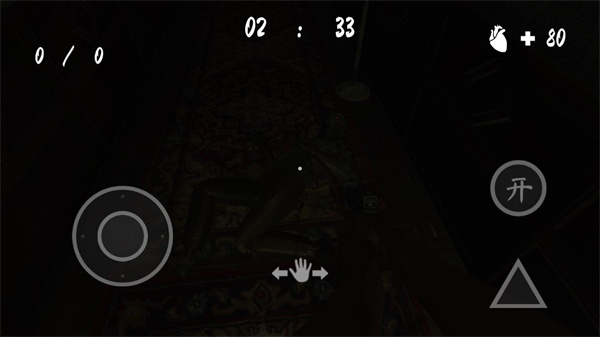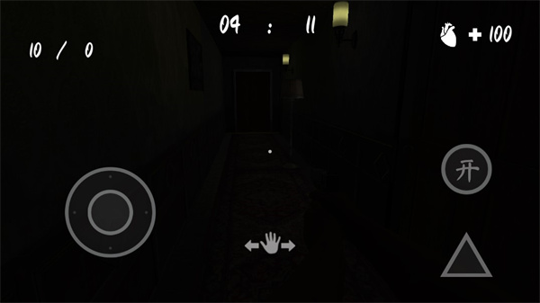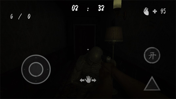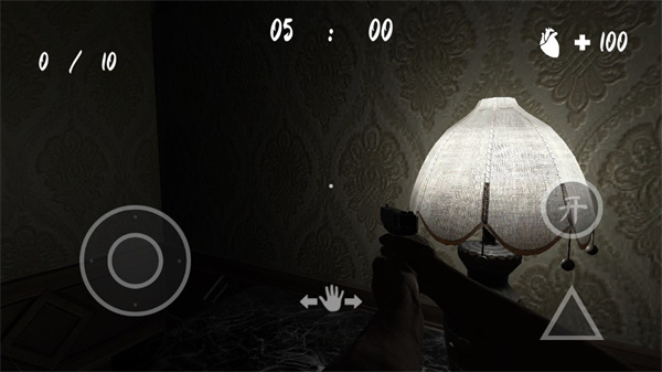 2、正式开始游戏后,你会进入操控界面,左侧是用于移动的摇杆,中间区域可以滑动屏幕环顾四周,顶端显示的是倒计时,而右上角则是你当前的生命值。