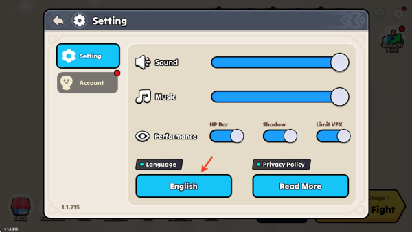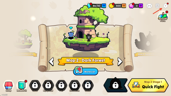 1、进入游戏后,点击右上角的设置按钮,打开游戏设置界面。