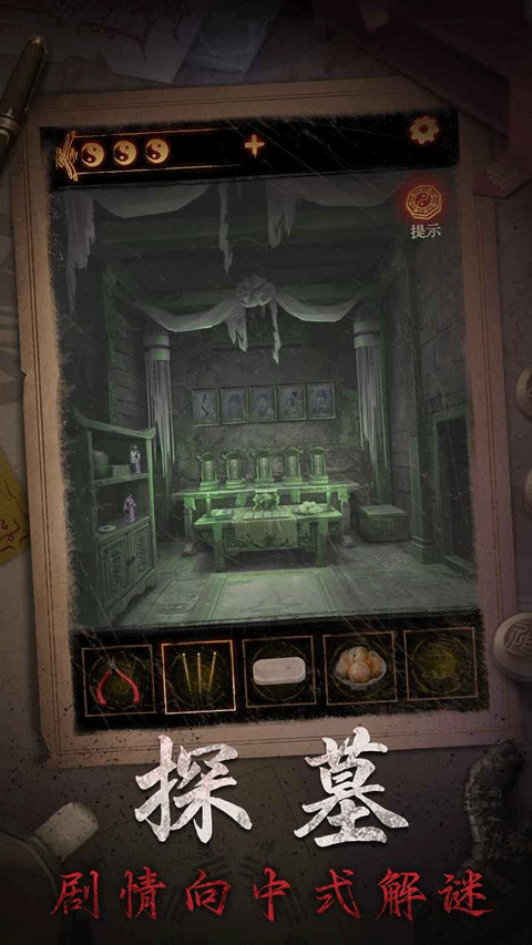 1、游戏采用中式的恐怖悬疑风格,给玩家营造了一种逼真、诡异的氛围,让玩家仿佛置身于一座神秘的古墓之中。
