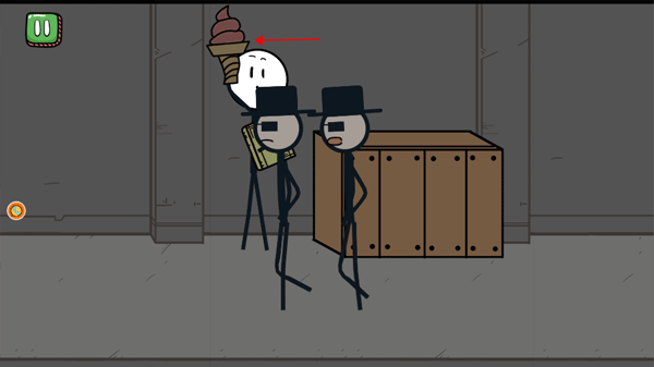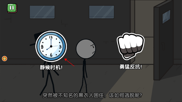 火柴人被神秘的 黑衣人 困住后,出现了两种选择。选择 “静候时机”,等待机会逃脱。