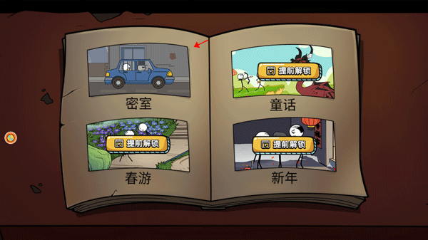 游戏中共有四个关卡,点击 已经解锁的密室 进入挑战。