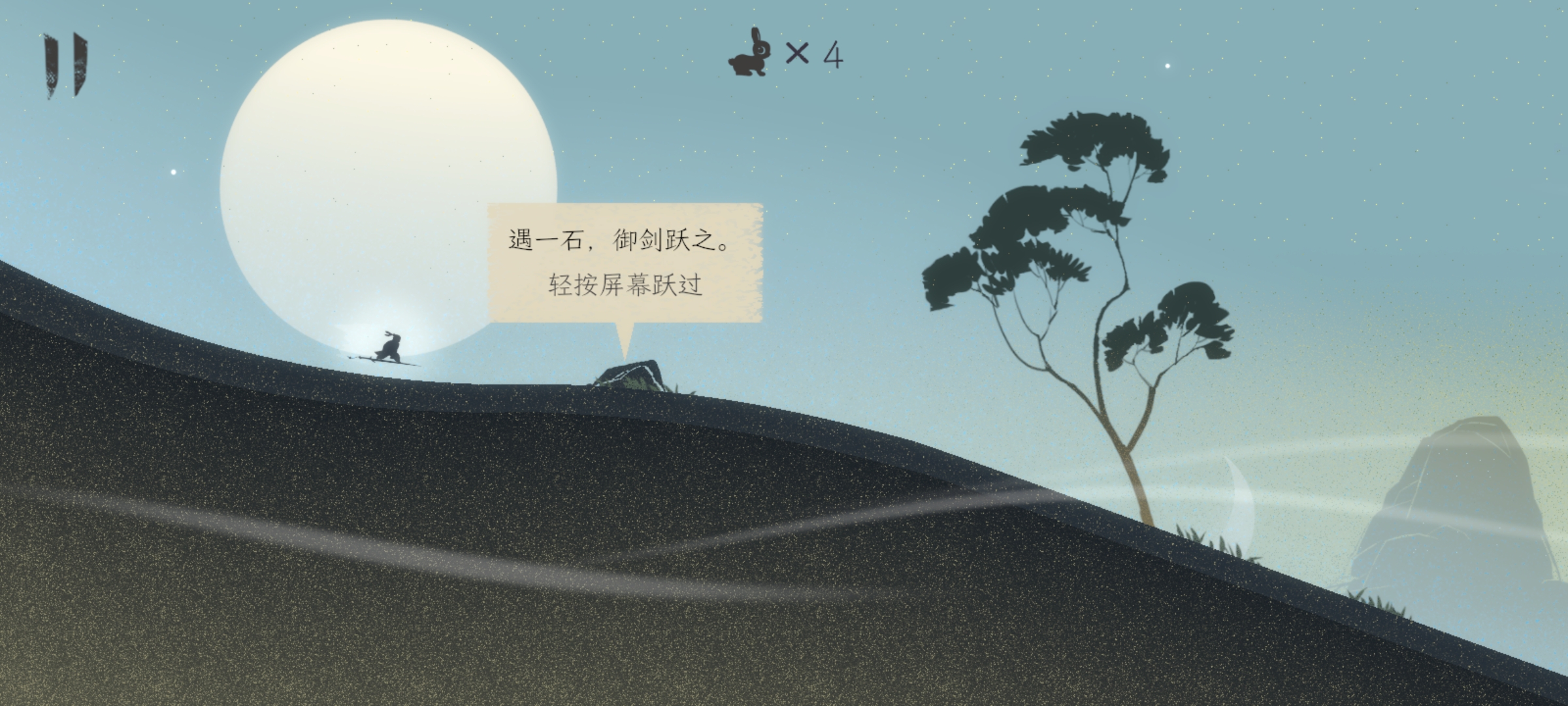 在前方的道路上有一块大石,剑仙需要用剑轻巧跃过,点击屏幕,剑仙便会轻松飞越障碍。