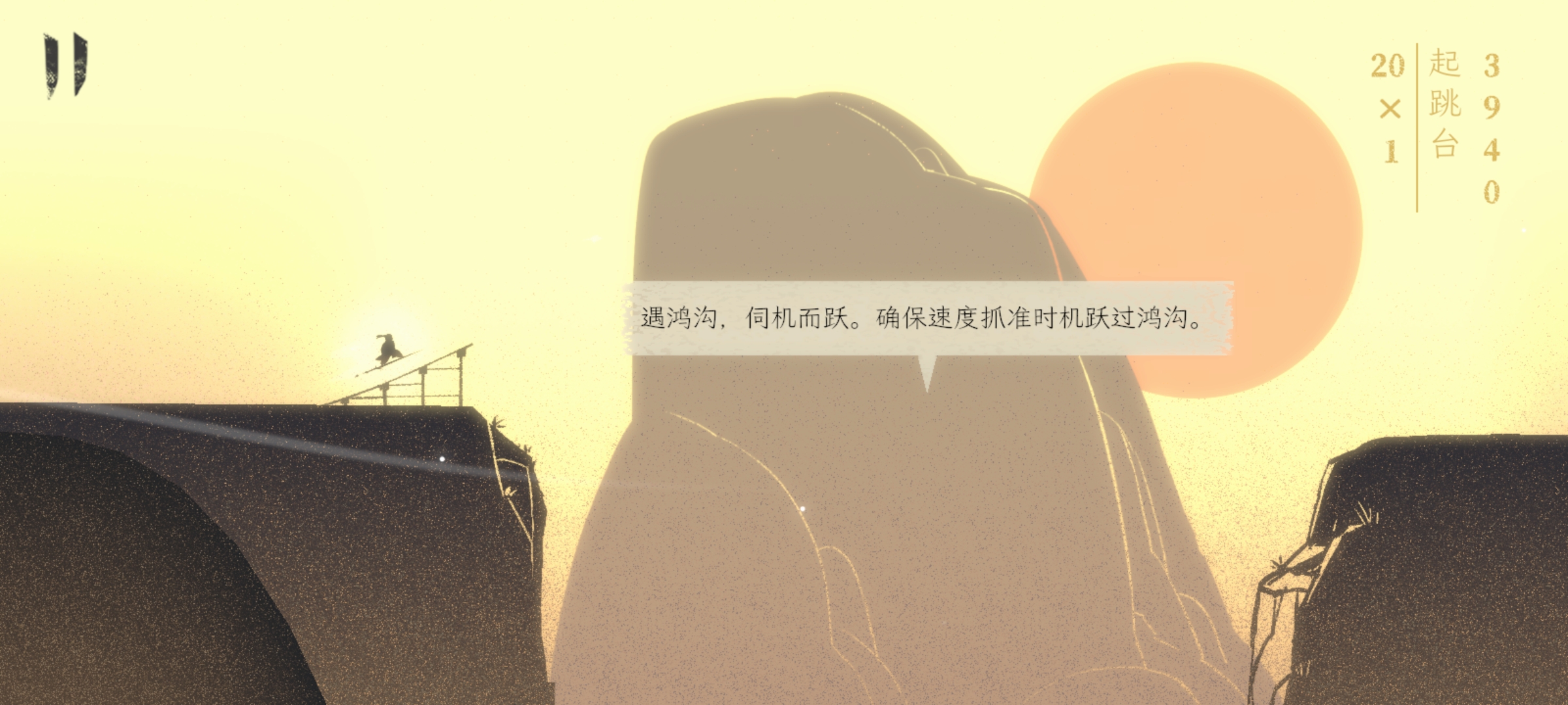 面对一条深鸿沟,剑仙需等待时机,凭借速度与精准的判断来成功跃过鸿沟,掌握好跳跃的时机才能顺利通过。