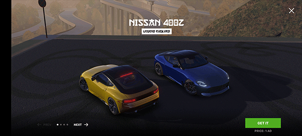 点击屏幕下方的 “My Cars” 选项,再点击 “+”号 进入赛车选择界面,你可以在这里查看各种炫酷赛车,并选择一辆进行购买。