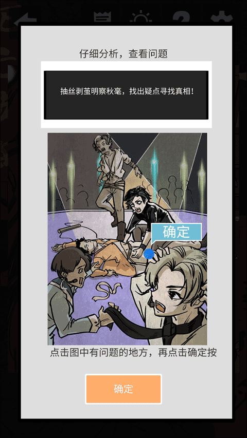 进入游戏关卡后,你需要点击屏幕上的某个位置进行推理,探索线索,逐步解锁谜题。