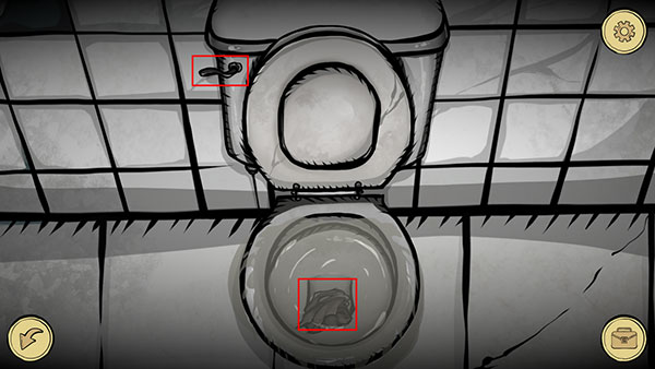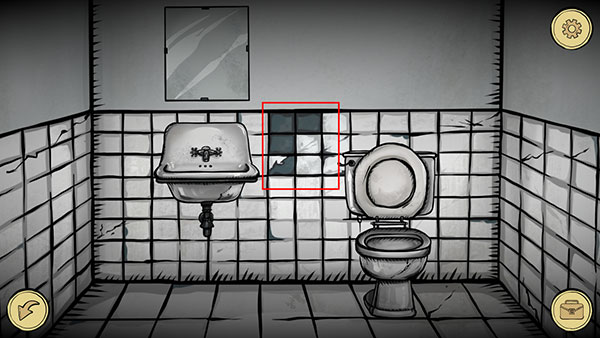 前往房间后的厕所,点击中间破碎的砖块,调查其周围。