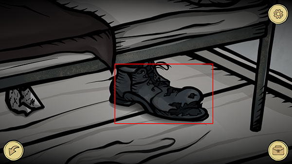 在床下,你发现了一只【旧靴子】。点击它进行拾取。