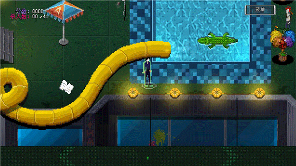 在不同的房间用不同的方法消灭他们,小心不要被警察抓住,像素艺术设计为玩家提供了独特而复古的视觉体验,游戏被分成多个房间,需要小心潜入暗杀和完成任务,设计了单人和多人在线游戏,玩家可以根据需要选择冒险,每个角色都有不同的外观和能力,这增加了游戏的可玩性。