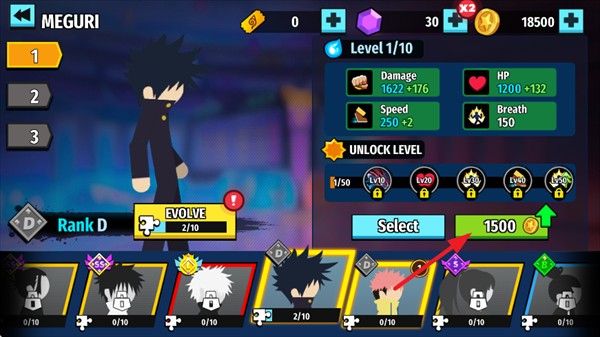 2、火柴人咒术回战简单易用,只需点击您的指尖,选择正确的技术,以达到最高的链接。