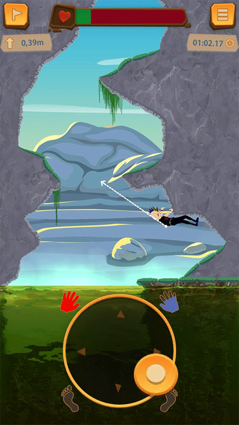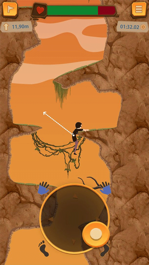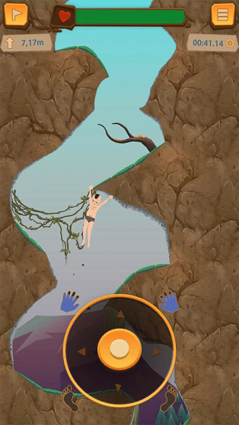 3、选定好岩石后,即可正式进入游戏,在游戏过程中,使用下方的转盘控制登山者的动作,开始攀登。