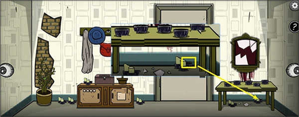 3、将视线转移到房间的右下角,前往桌子下方寻找线索。