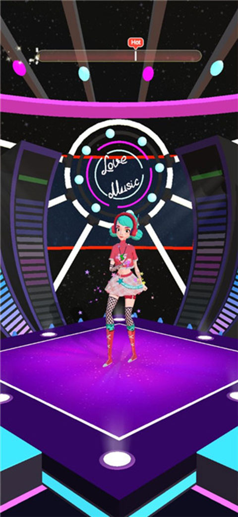 3、服装选择完成后,即可让公主开始跳舞,通过舞蹈可以获得爱心奖励,提升游戏进度;