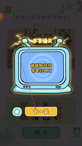 2、如果遇到困难,可以点击下方的【提示】按钮,获取游戏线索;