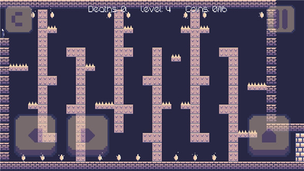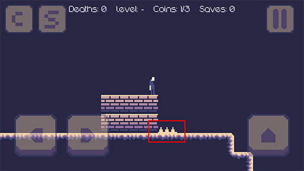3、在游戏中要特别注意不要踩到尖刺,如果不小心踩到,角色会立即失败,需要从关卡起点重新开始,非常考验反应和操作能力。