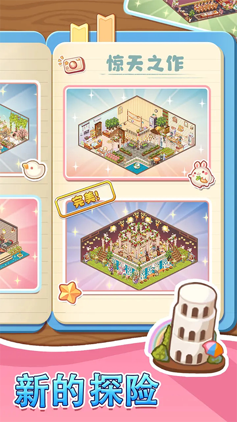 2、拼装小窝参与每周更新的新挑战,在特定条件下完成房间设计任务,测试你的创造力和匹配能力。