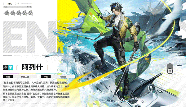 孤儿身份,在奥里莎师者推荐下加入终末地,担任外勤干员,主要负责前线探索和情报传递,执行任务时灵活且高效。