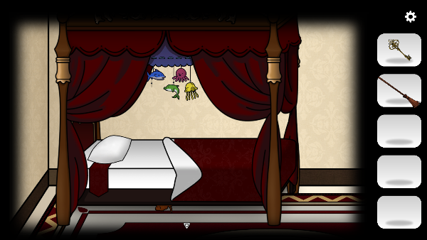 1、在本站免费下载并打开游戏后,你会进入一个陌生神秘的房间,需要寻找线索解谜以顺利逃脱,点击床上的被子,你会得到一把钥匙,然后点击扫把,把床底的玩具扫出来。