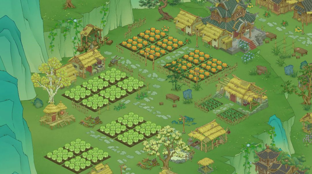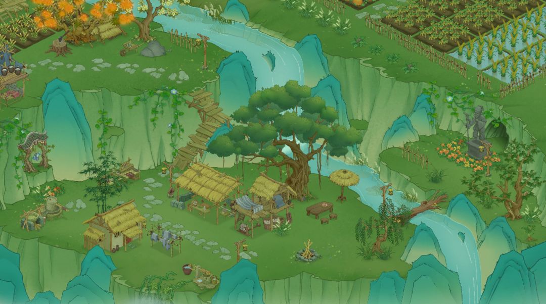初始区域只能满足谷主们的基础发展需要,完成新手引导并修建山路后,谷主们就可以前往 小村。小村面积更大,资源更加丰富,尤其是采矿所需的矿石可以在这里的石矿洞中收集,是发展经济和装备的重要区域。