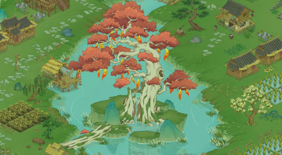 位于桃谷中央河流中的 不死树 是最特别的存在,不仅能庇护村民,使他们不被野兽发现,还能延长村民的寿命,是谷主保护村民和提升村落稳定性的关键设施。