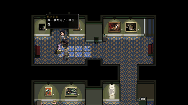 3、移动角色跟随剧情来到展览馆,一直前进,直到到达左侧的通道,在这里你会看到一个意外的场景,这时你会想立即离开。
